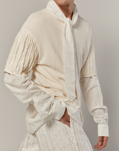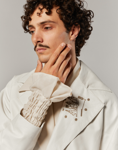 JALZ is born from the intersection of love and fear. Inspired by the improvisational spirit of jazz and the haunting fragility of memory, the collection explores the boundaries of traditional menswear tailoring. With thoughtful details like vanishing pockets and disrupted stripes, JALZ tells a story of creativity intertwined with the fear of losing one’s mind. Each piece reflects a delicate balance between precision and playfulness, creating a collection that is both timeless and innovative.