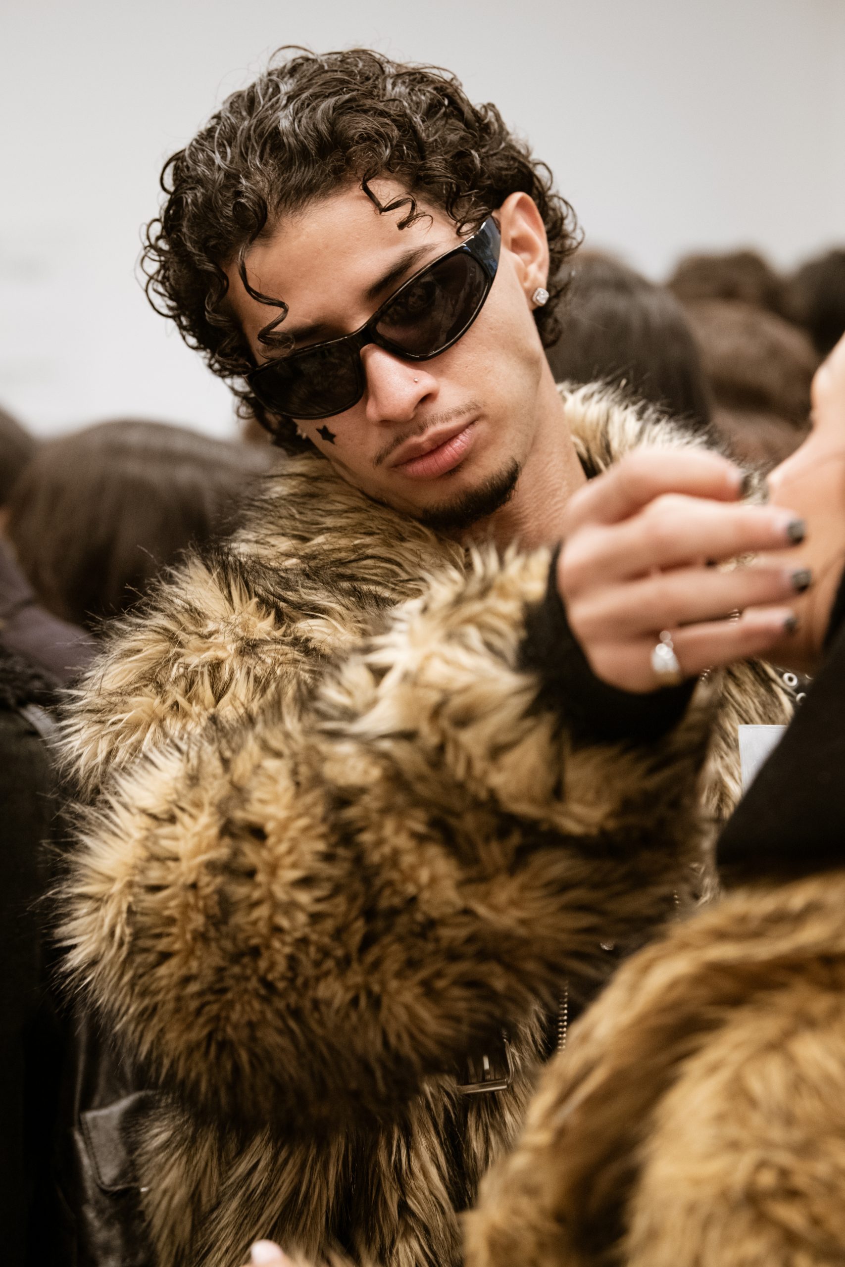 The narrative reverses the conventional codes of masculinity. While doina as a song has historically been a feminine voice, here it becomes embodied by a man who is not warrior but wanderer, lover, and healer. The garments carry this shift: cropped pony hair jackets with sharp tailoring, oversized leather shirts engraved with motifs inspired by folklore, and voluminous pieces that recall shepherd’s coats. Each design places vulnerability at the core of strength, making fragility a form of presence.