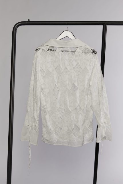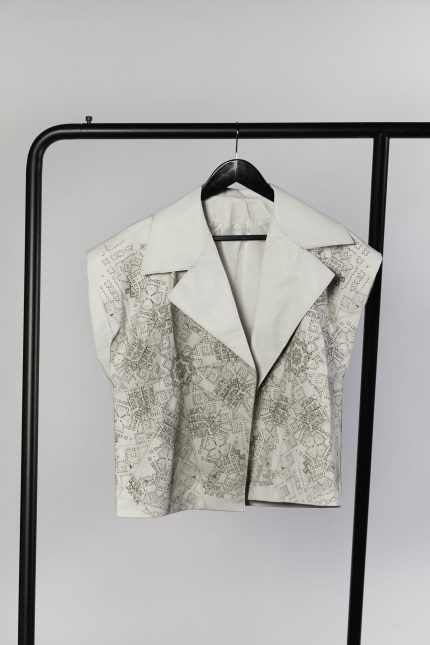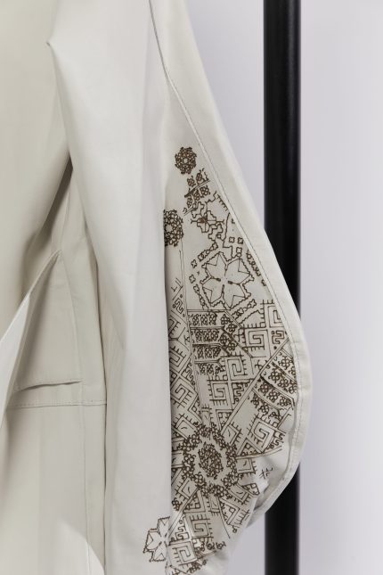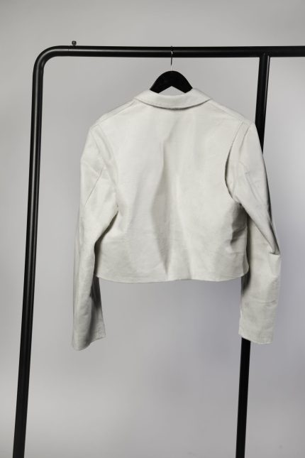 Every garment balances precision with disruption. Lapels are widened, sleeves gathered, proportions shifted. Details are pared back to highlight construction, where engraved surfaces or hand-finished seams become quiet focal points.