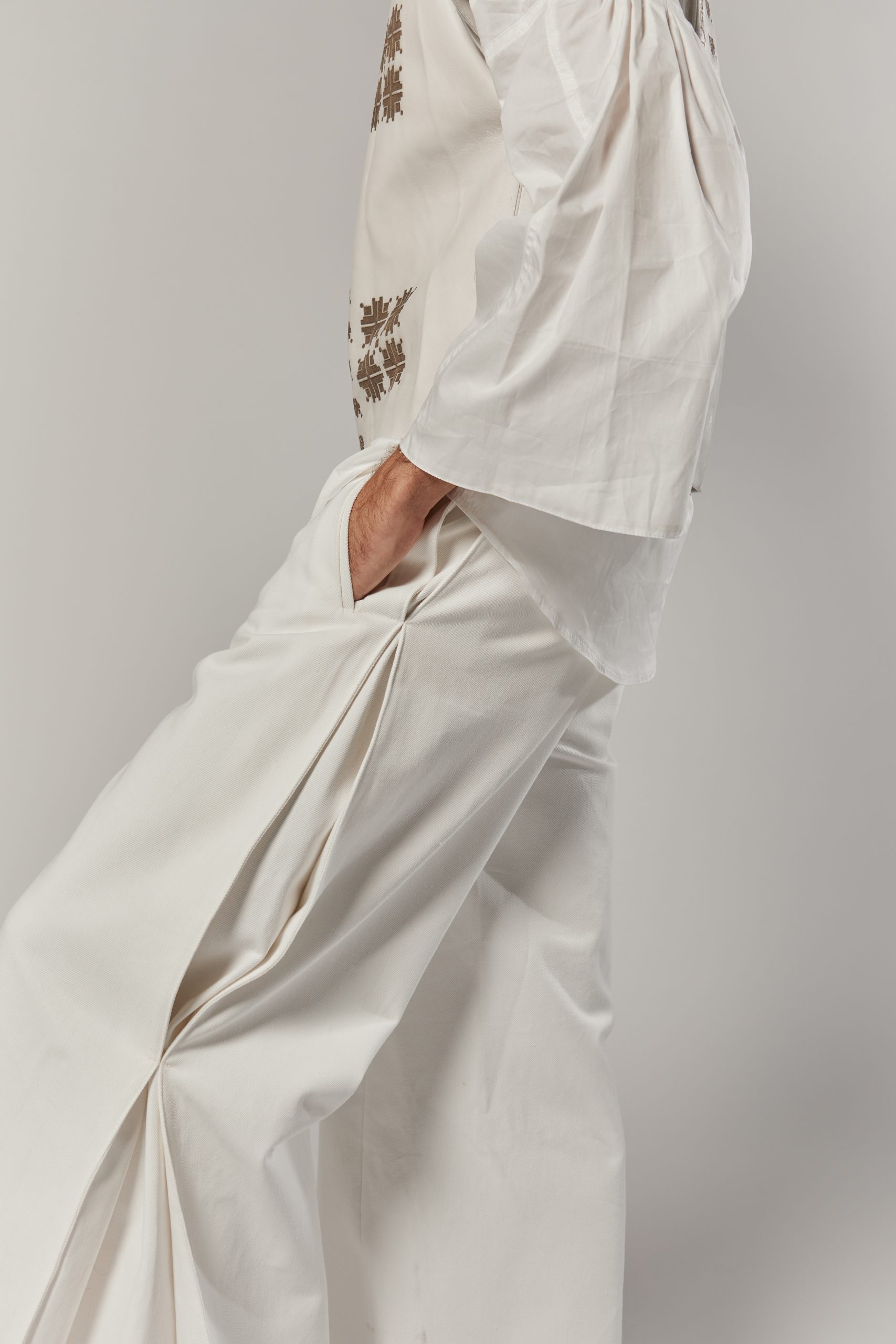 The Folded Path Trousers are built around architectural folds that bring depth and volume to a straight-leg silhouette.
