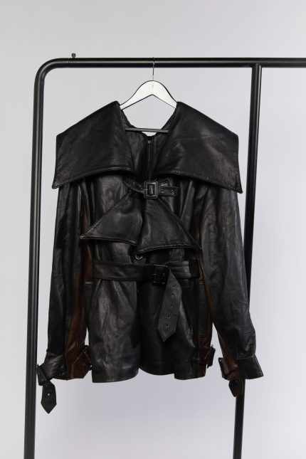 Bold lapels for a striking silhouette. Signature small leather pockets for a refined detail.