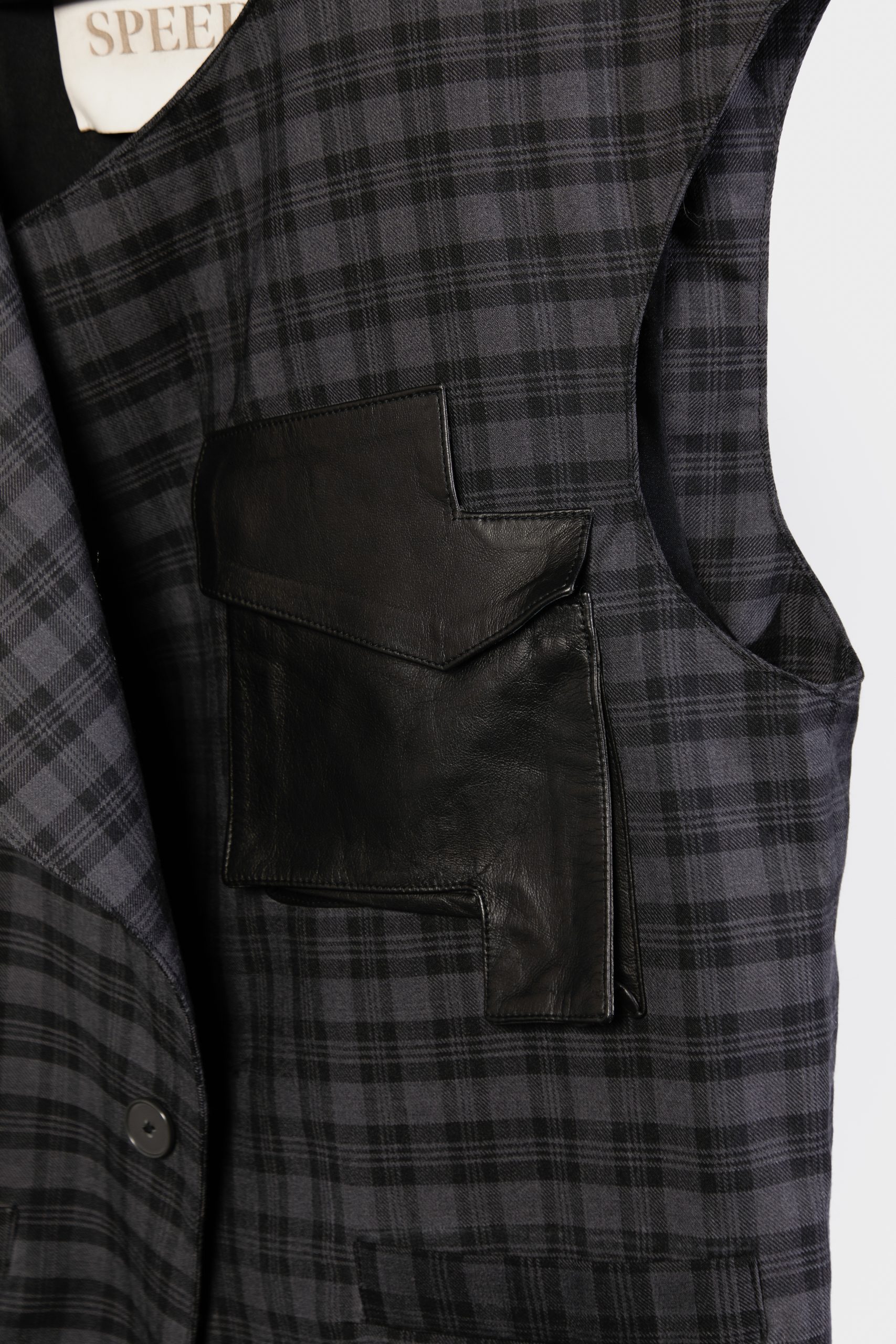 The Sync waistcoat brings balance and precision to your wardrobe. With its bold lapels and signature leather pockets, it offers a sleek, tailored silhouette.